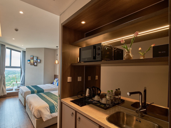 – Căn M12xx diện tích 27m² view biển trọn view cực đẹp. Nhỏ nhắn xinh xắn. Full nội thất 5* của CĐT, 2 giường 1,2m có thể kéo vô thành giường 2.4m rộng mênh mông. Mình có làm thêm bục ngắm cảnh rất đẹp.