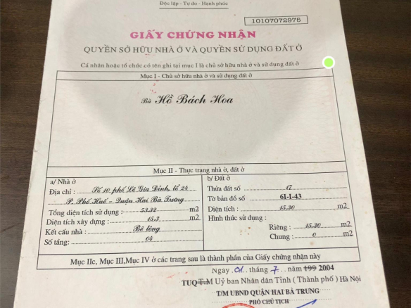 Sổ đỏ chính chủ.