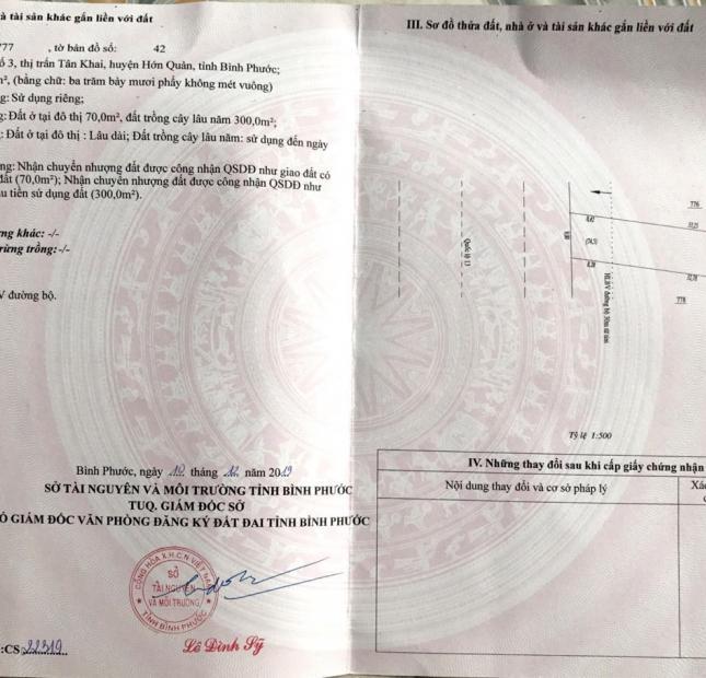 Chính chủ bán đất mặt tiền Quốc lộ 13, vị trí đắc địa, giá tốt nhất khu vực – Địa chỉ: quốc lộ 13, thị trấn Tân Khai, Đồng Nai (huyện Hớn Quản, Bình Phước cũ) – Diện tích: 370 m², ( mặt tiền 9m x 41m ) – Lộ giới 40m, ngay chợ Tân Khai, dân cư đông, gần trường học, Bách hoá xanh, Trung tâm Hành chính, Ngân hàng Nông nghiệp, Cây xăng. – Đất 2 mặt tiền, mặt trước giáp QL 13, mặt sau giáp đường tránh quốc lộ 13 đã có quy hoạch. Phù hợp xây biệt thự, làm showroom, cửa hàng, kho bãi. – Giá 3,55 tỷ. Có thương lượng cho người mua thiện chí – Hoa hồng cho người giới thiệu 2%. – Liên hệ chính chủ: 0904 542557 hoặc 0968409688