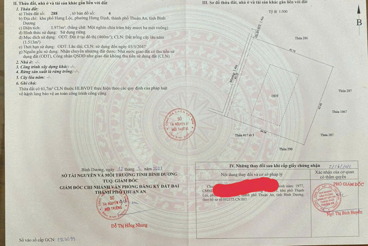 DT: 43 x 45 có 460m2 thổ cư