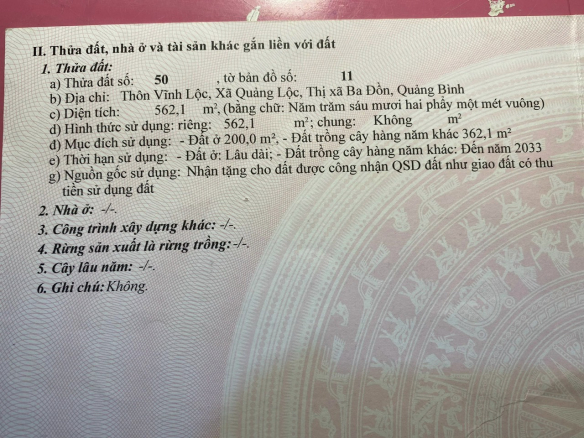 “ CHÍNH CHỦ BÁN ĐẤT TẶNG NHÀ CẤP 4 TẠI THỊ XÃ BA ĐỒN, QUẢNG BÌNH
