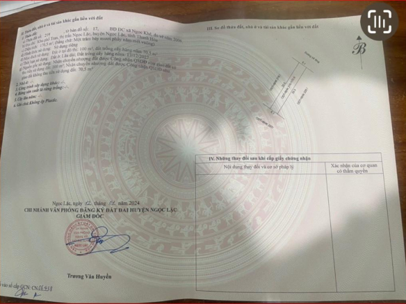– Vị trí: 2 lô ở thị trấn Ngọc lặc thanh hóa.