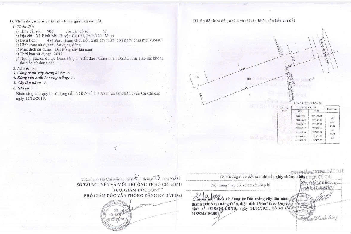Diện tích: 475m2 ( 9,8m x 50m) – Thổ cư 134m2