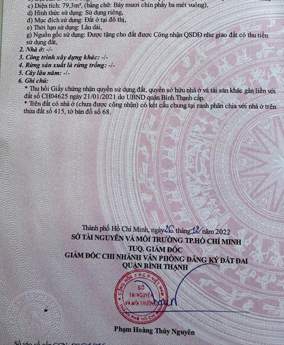 • Diện tích sổ: 79,3 m² (thổ cư 100%, sử dụng riêng, đất ở tại đô thị)