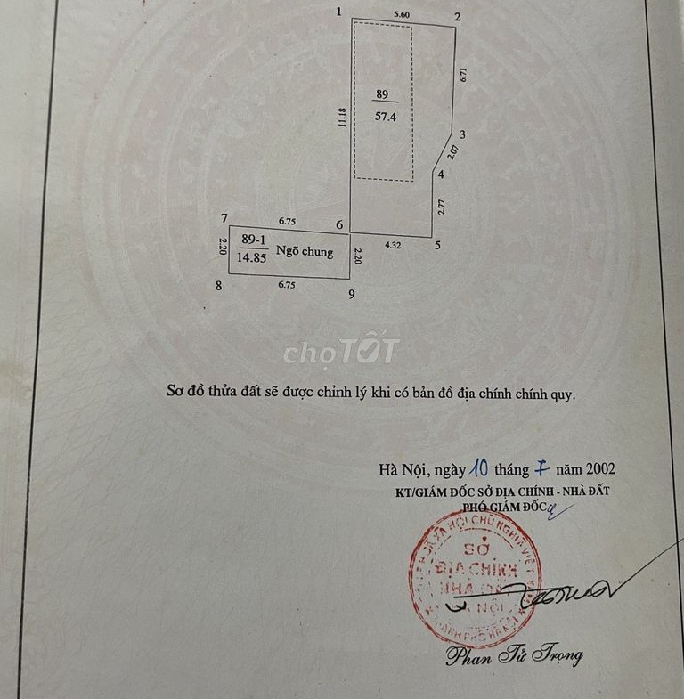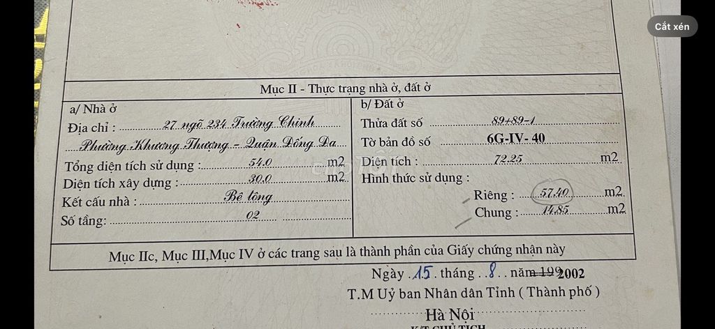 – Diện tích sổ đỏ 57,4 m2.