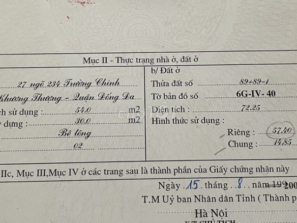Chính chủ Bán nhà số 27 ngõ 234 Trường Chinh, Q Đống Đa, Hà Nội.