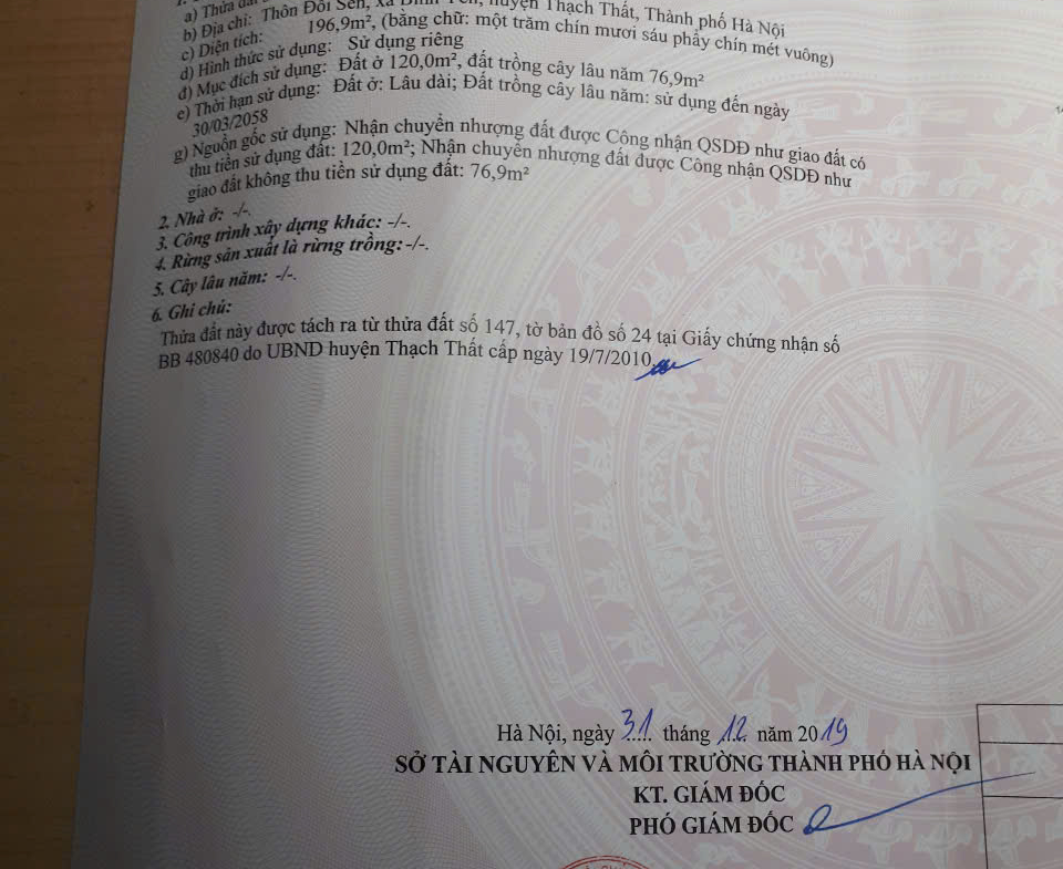 Cần bán mảnh đất trục chính 196.9 m2 tại Thôn Đồi Sen trì, trong đó có 120m2 đất ở, 76.9 m2 là đất trồng cây. Khuyến mại đất ngoài sổ gần 30m2.