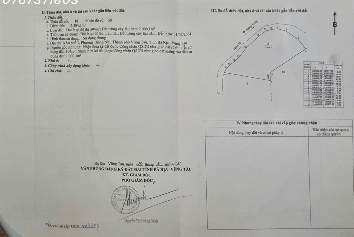 Chính chủ cần bán 2.300m2 đất Phường Thắng Nhì, Vũng Tàu, Bà Rịa Vũng Tàu, giá đầu tư