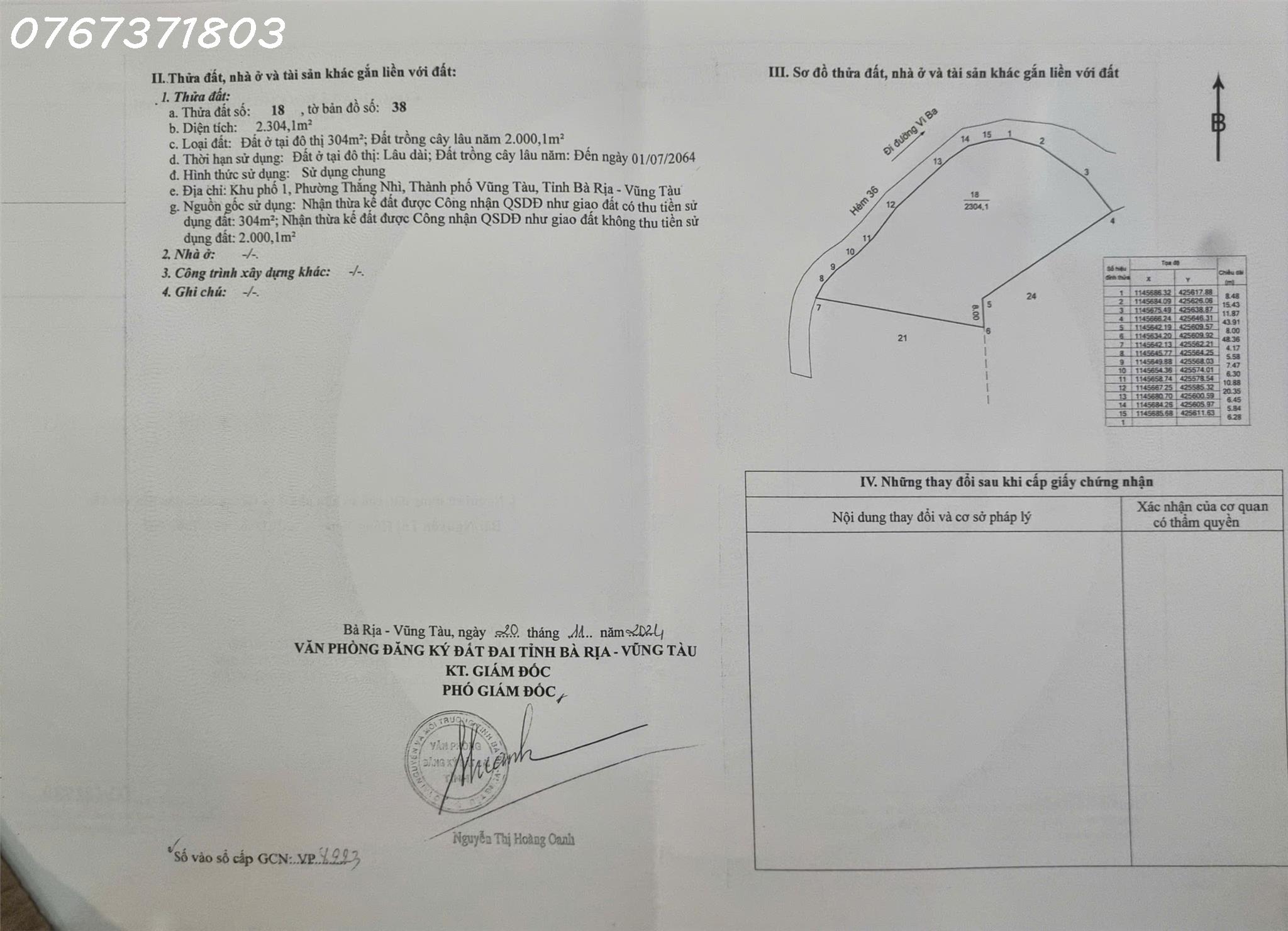 – Diện tích: 2300m2, 304m thổ cư ( Còn 500m2, 64m thổ cư )