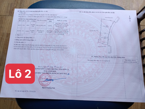 + Lô 2: >4000m2 ( có 1400 mét đã có bìa, còn lại chưa tách bìa , có 1 nhà sàn 3 gian và 1 nhà xây 2 tầng . Điện nước đầy đủ. Ở tại Bản hang trùng 2)