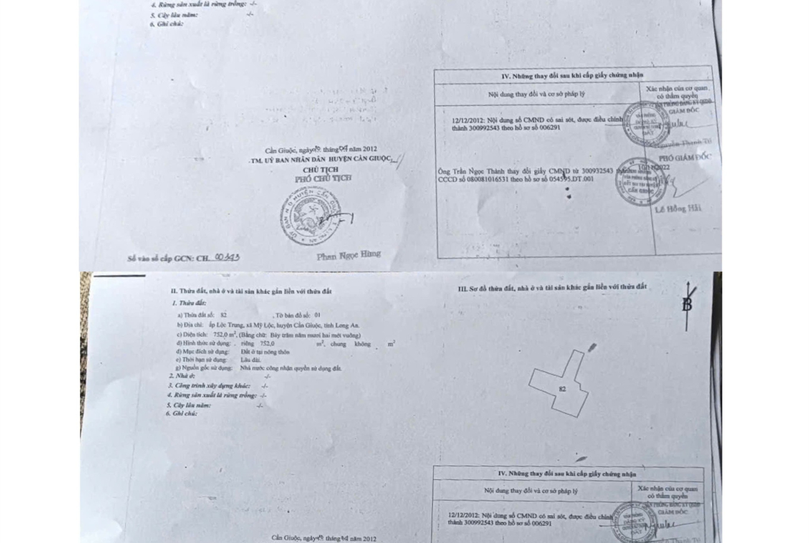 – Sổ riêng gồm 246m2 đất thổ và 267m2 đất lúa.