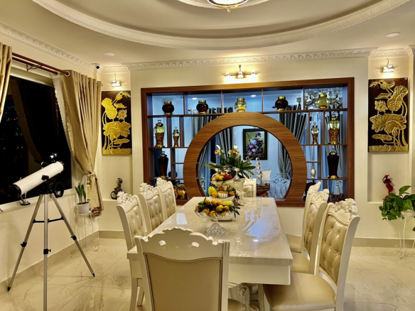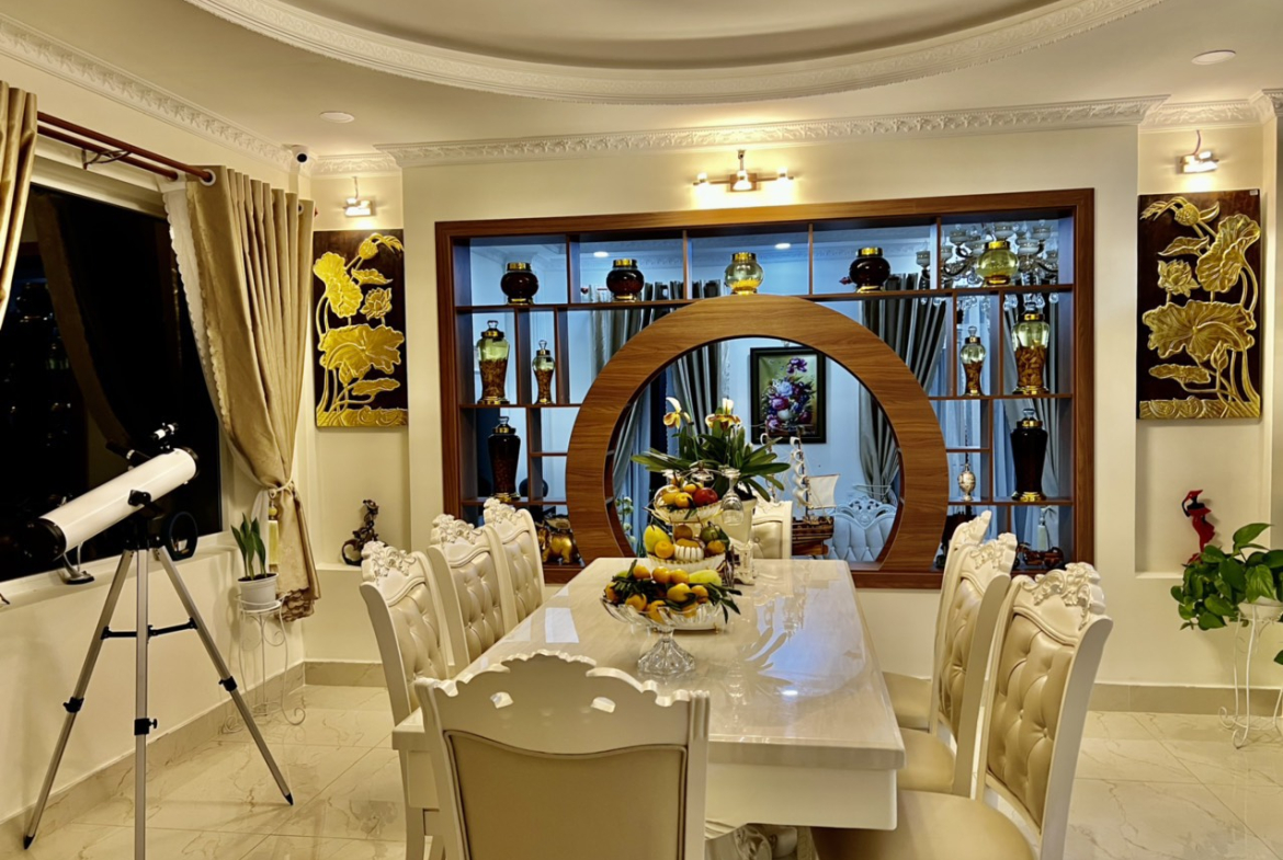 – Nhà gồm 1 trệt 3 lầu với 1 phòng khách, 1 bếp, 9 phòng ngủ, 9WC, sân rộng đậu được nhiều xe hơi, sân vườn rộng rãi với nhiều cây cảnh đẹp.