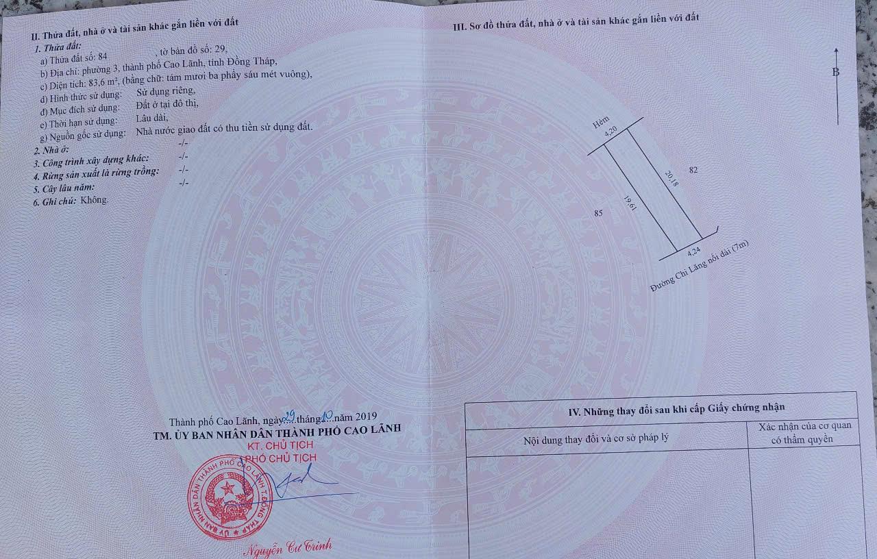 CHÍNH CHỦ Cần Bán Đất Mặt Tiền Đường Chi Lăng, Phường 3, TP Cao Lãnh, Đồng Tháp