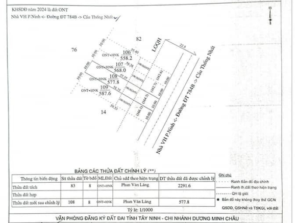 Chính chủ cần Bán đất mặt tiền đường nhựa ĐT784B (lộ giới 45m) Huyện Dương Minh Châu, Tây Ninh