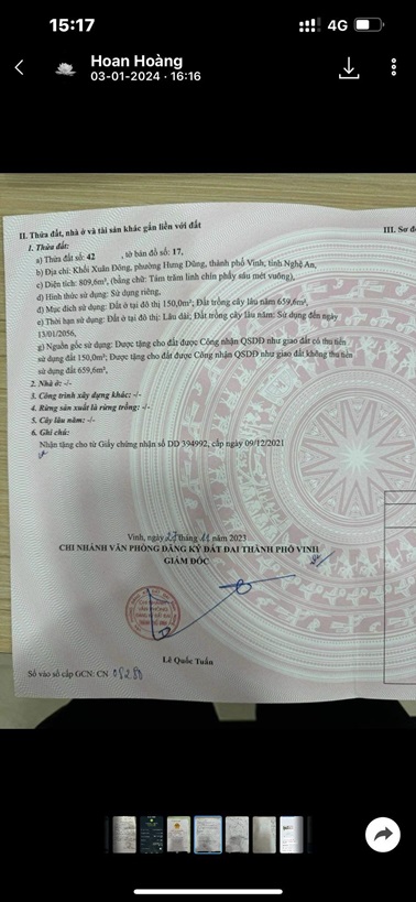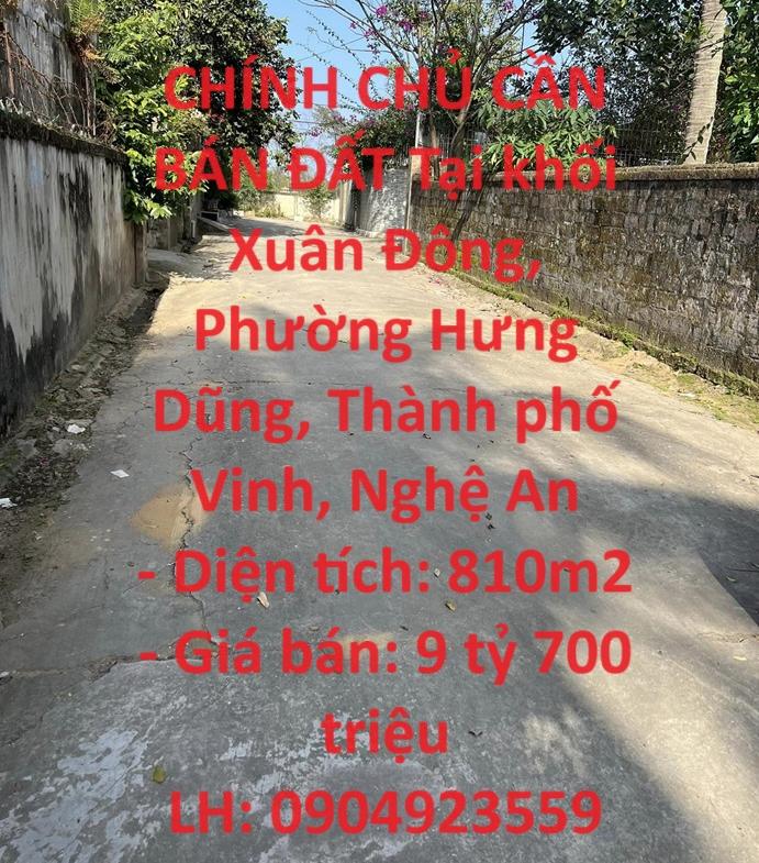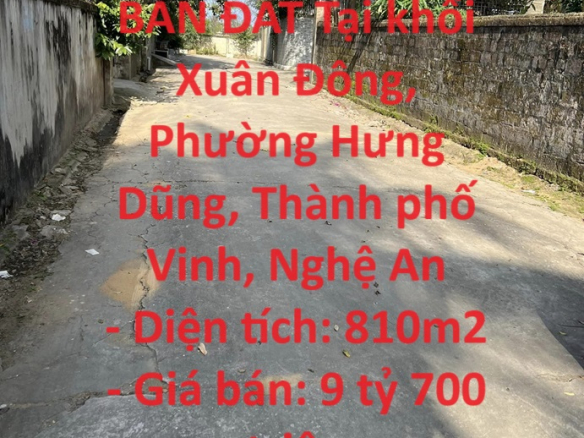 CHÍNH CHỦ CẦN BÁN ĐẤT Tại khối Xuân Đông, Phường Hưng Dũng, Thành phố Vinh, Nghệ An