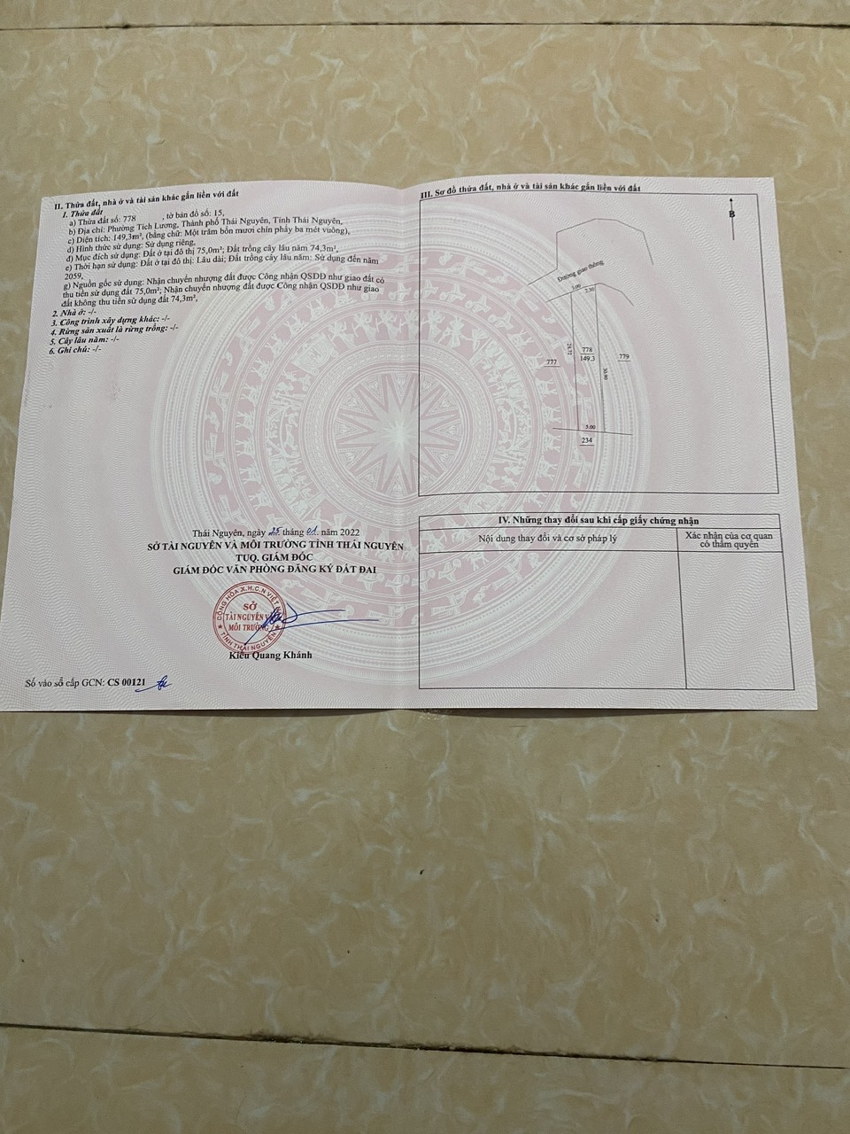 CHÍNH CHỦ CẦN BÁN ĐẤT TẠI: PHƯỜNG TÍCH LƯƠNG ,THÀNH PHỐ THÁI NGUYÊN, TỈNH THÁI NGUYÊN
