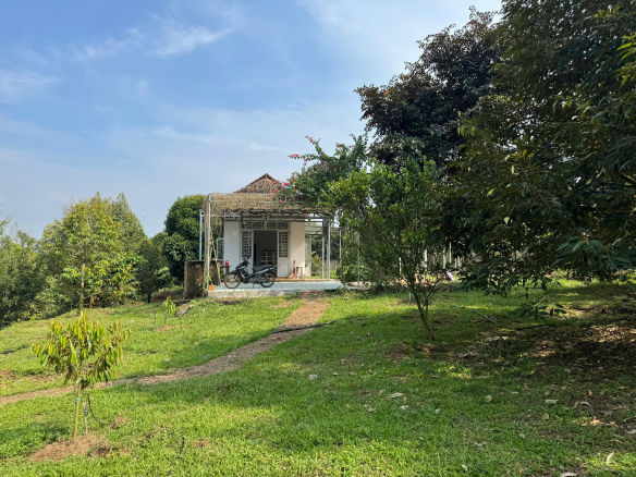 + Hiện trạng giống như hình, đã đầu tư cơ bản hạ tầng. + sân, giếng khoan, hệ thống tưới, ao cá, nhà cấp 4, cây ăn trái đã thu hoạch lâu năm gồm sầu riêng (chủ lực), chôm chôm thái, măng cụt, bưởi da xanh, vú sữa…