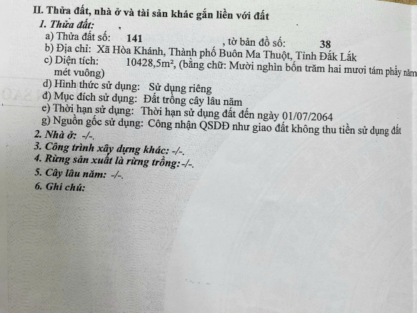 CHÍNH CHỦ Cần Bán Gấp 1Ha Đất Nông Nghiệp Tại Xã Hòa Khánh, TP. Buôn Ma Thuột, Đắk Lắk