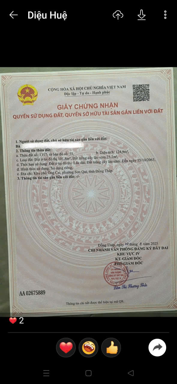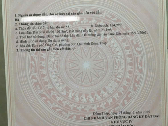 – Thửa 1317: Tổng diện tích: 124,9m², thổ cư 101,8m², giá bán: 1,7 tỷ, giá có thương lượng.