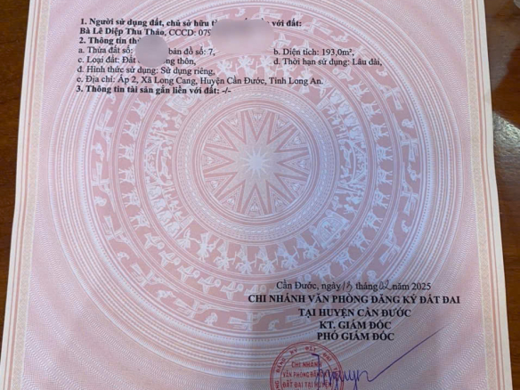 CHÍNH CHỦ Cần Bán Gấp Nền 189m2 Tại Xã Long Cang, Cần Đước, Long An