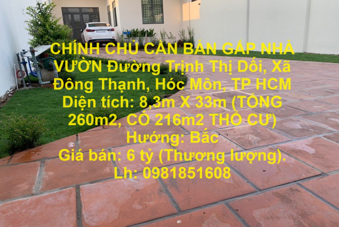 CHÍNH CHỦ CẦN BÁN GẤP NHÀ VƯỜN Đường Trịnh Thị Dối, Xã Đông Thạnh, Hóc Môn, TP HCM