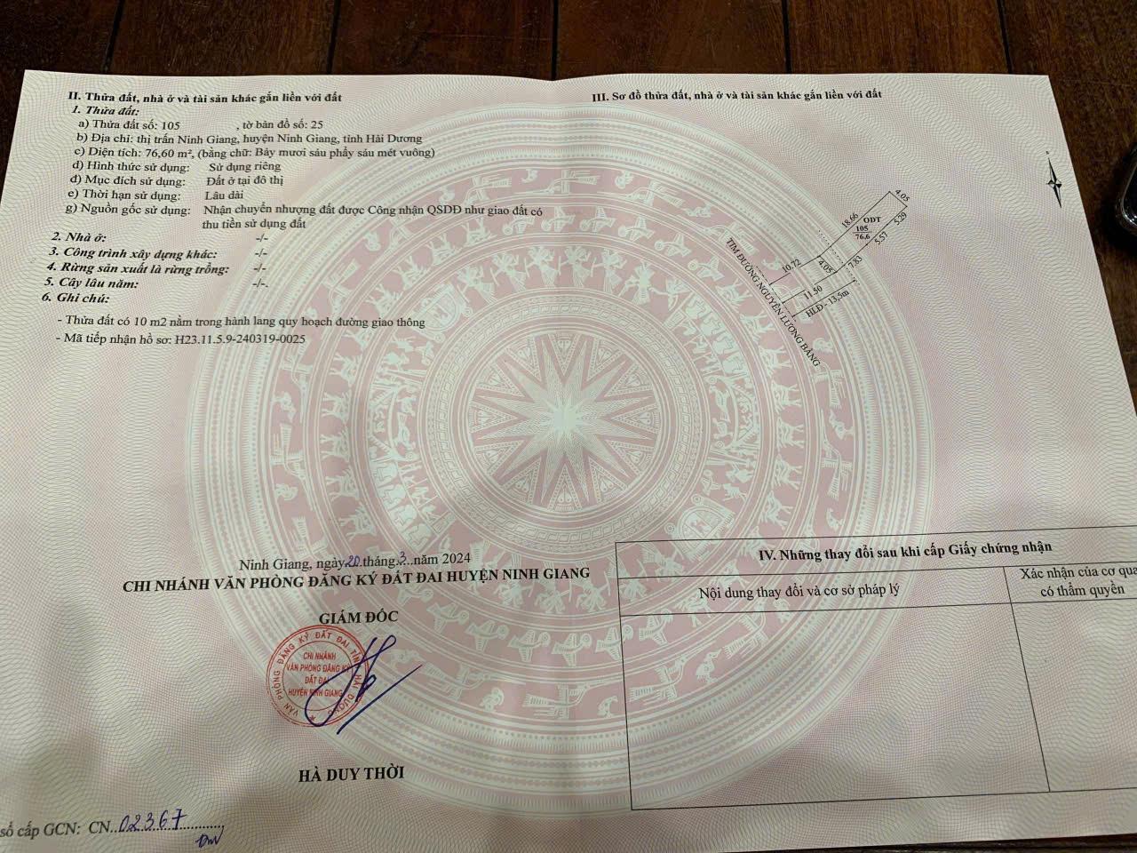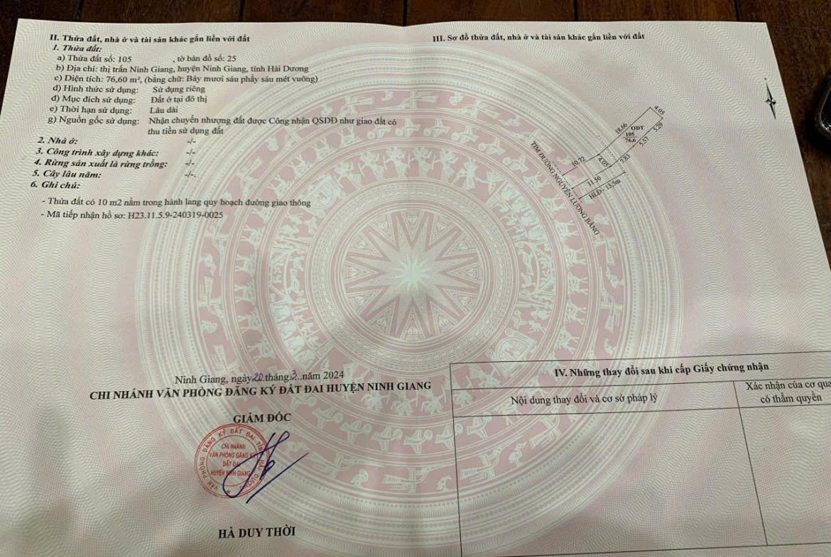 Chính Chủ Cần Bán Lô Đất Đẹp – Giá Tốt Vị Trí Tại TT Ninh Giang, Hải Dương