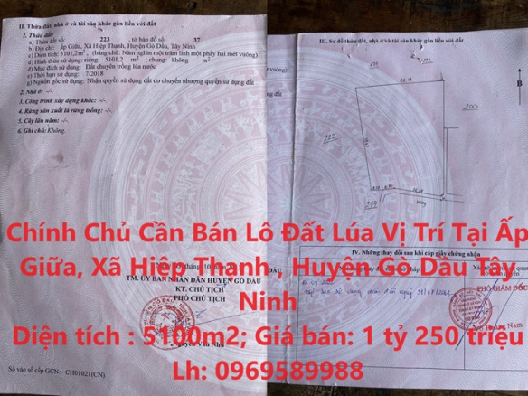 Chính Chủ Cần Bán Lô Đất Lúa Vị Trí Tại Huyện Gò Dầu, Tỉnh Tây Ninh