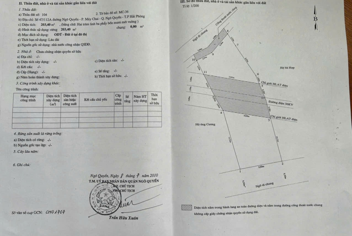 Chính Chủ Cần Bán Lô Đất ( sẵn nhà kiểu biệt thự cũ) 47/112 đường Ngô Quyền, TP Hải Phòng
