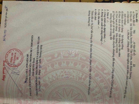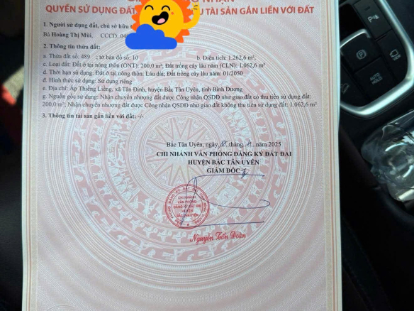 Chính Chủ Cần Bán Lô Đất Xã Tân Định, Huyện Bắc Tân Uyên, Bình Dương