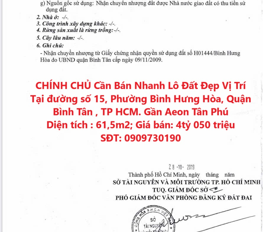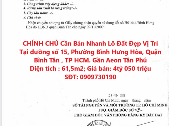 CHÍNH CHỦ Cần Bán Nhanh Lô Đất Đẹp Vị Trí Tại Quận Bình Tân, TP HCM