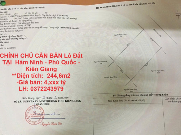 CHÍNH CHỦ CẦN BÁN NHANH Lô Đất Tại ấp Bãi Vòng – Hàm Ninh – TP Phú Quốc – Kiên Giang