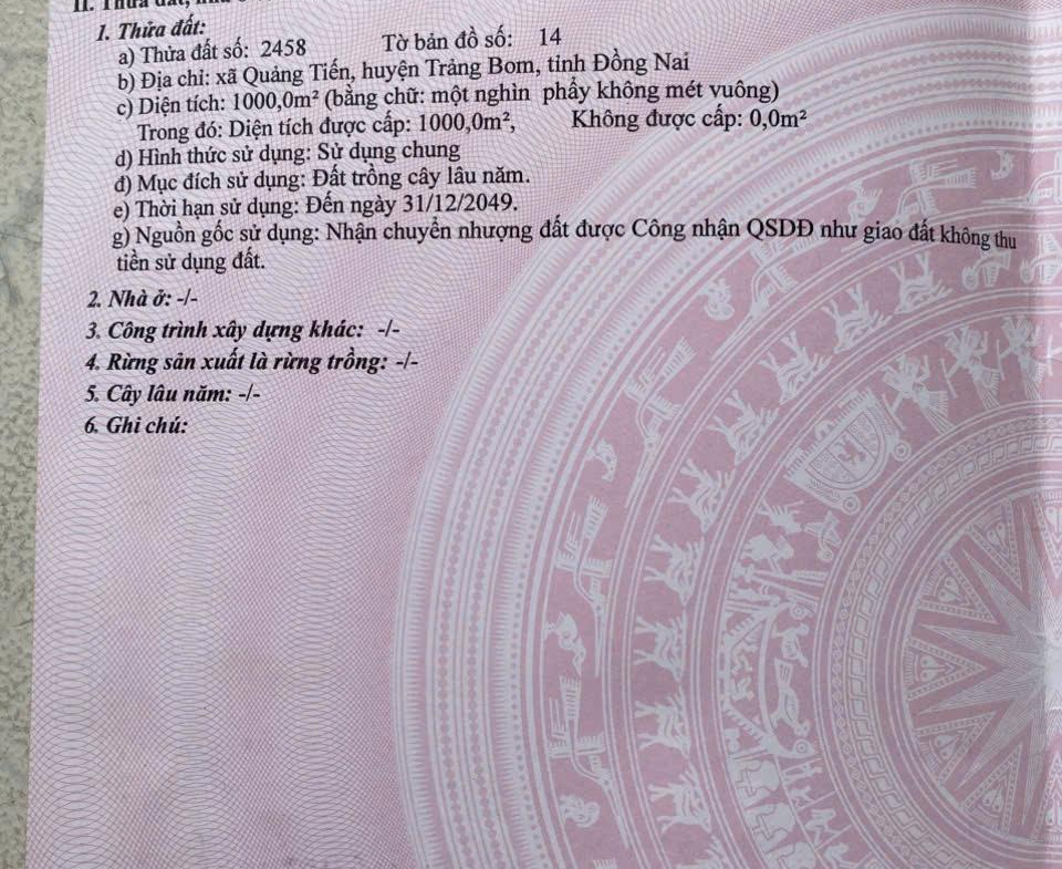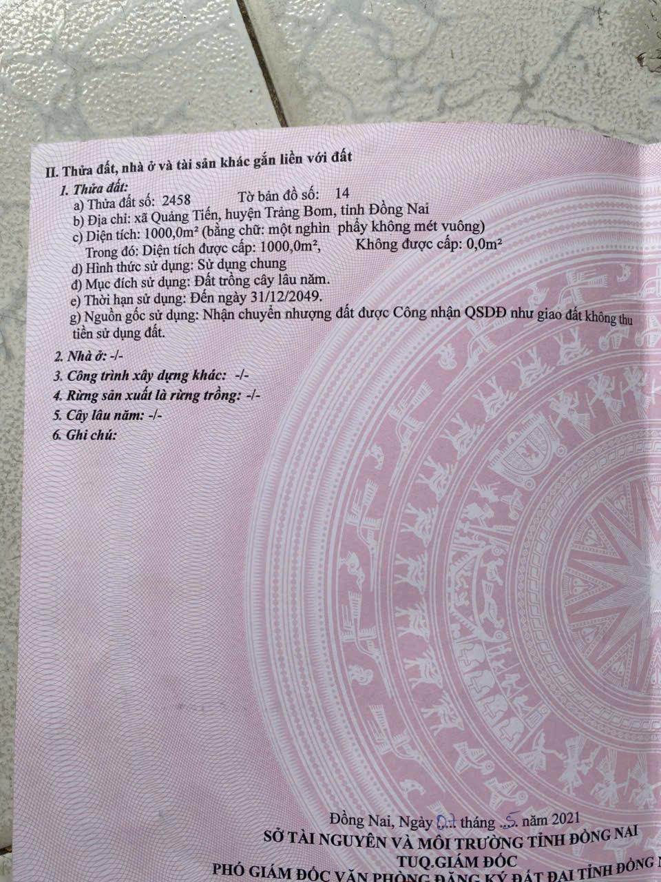 CHÍNH CHỦ CẦN Bán Nhanh Lô Đất Tại Xã Quảng Tiến , Trảng Bom , Đồng Nai .