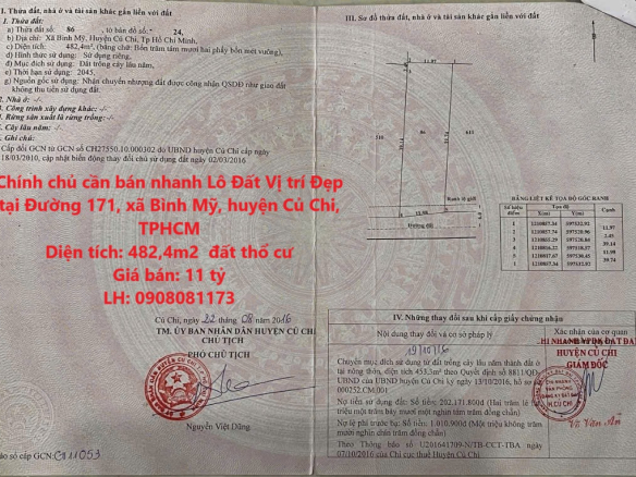 Chính chủ cần bán nhanh Lô Đất Vị trí Đẹp tại xã Bình Mỹ, huyện Củ Chi, TPHCM.