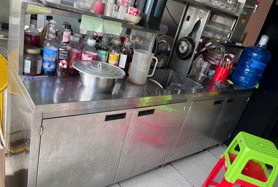 – Mặt bằng rộng: 20 ~ 25m2. Có sẵn đầy đủ kệ tủ, bồn rửa inox 304, xe, tu lạnh chỉ việc vào bán. Giá: 40tr ( bớt nhẹ) Quán vẫn bán bình thường đến khi sang được