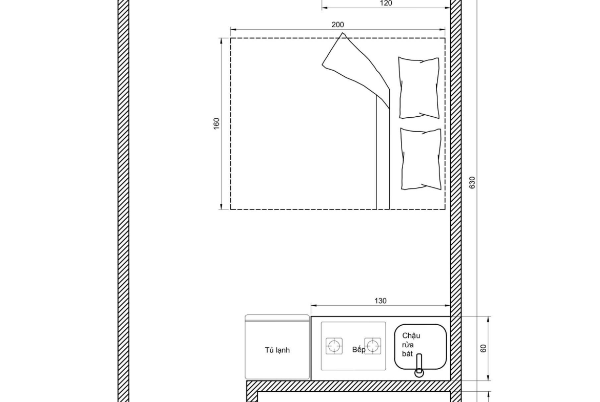 -Căn hộ dịch vụ mini, thiết kế 1 phòng ngủ riêng biệt, thoáng và sạch sẽ.