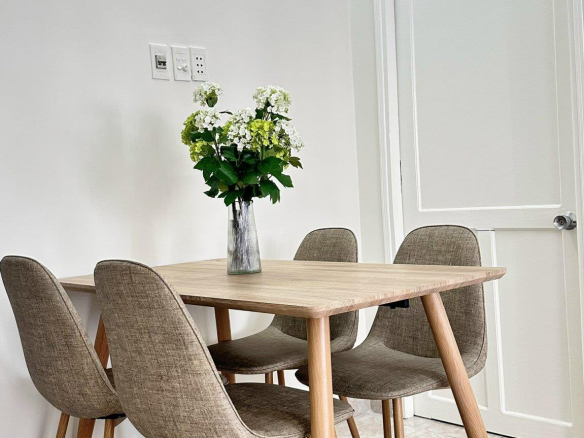 – Đầy đủ nội thất sẵn có: Toilet có máy nước nóng; kệ bếp; tủ treo tường bếp; máy giặt; tủ lạnh; bộ sofa; bàn ăn; kệ tivi; giường nệm 1m6x2m; tủ quần áo; kệ giày; quạt trần; máy lạnh… quý khách chỉ cần xách vali vào ở.