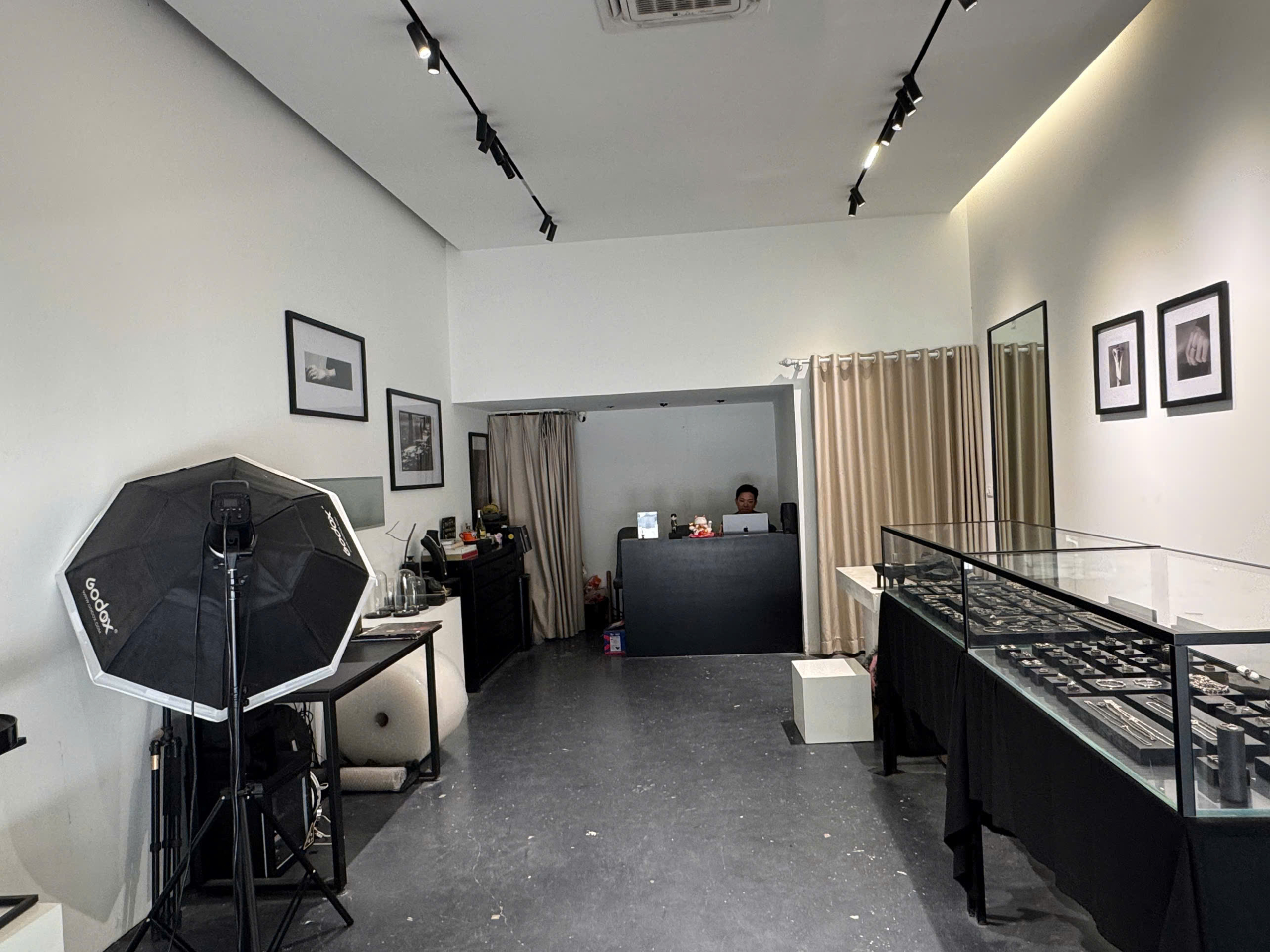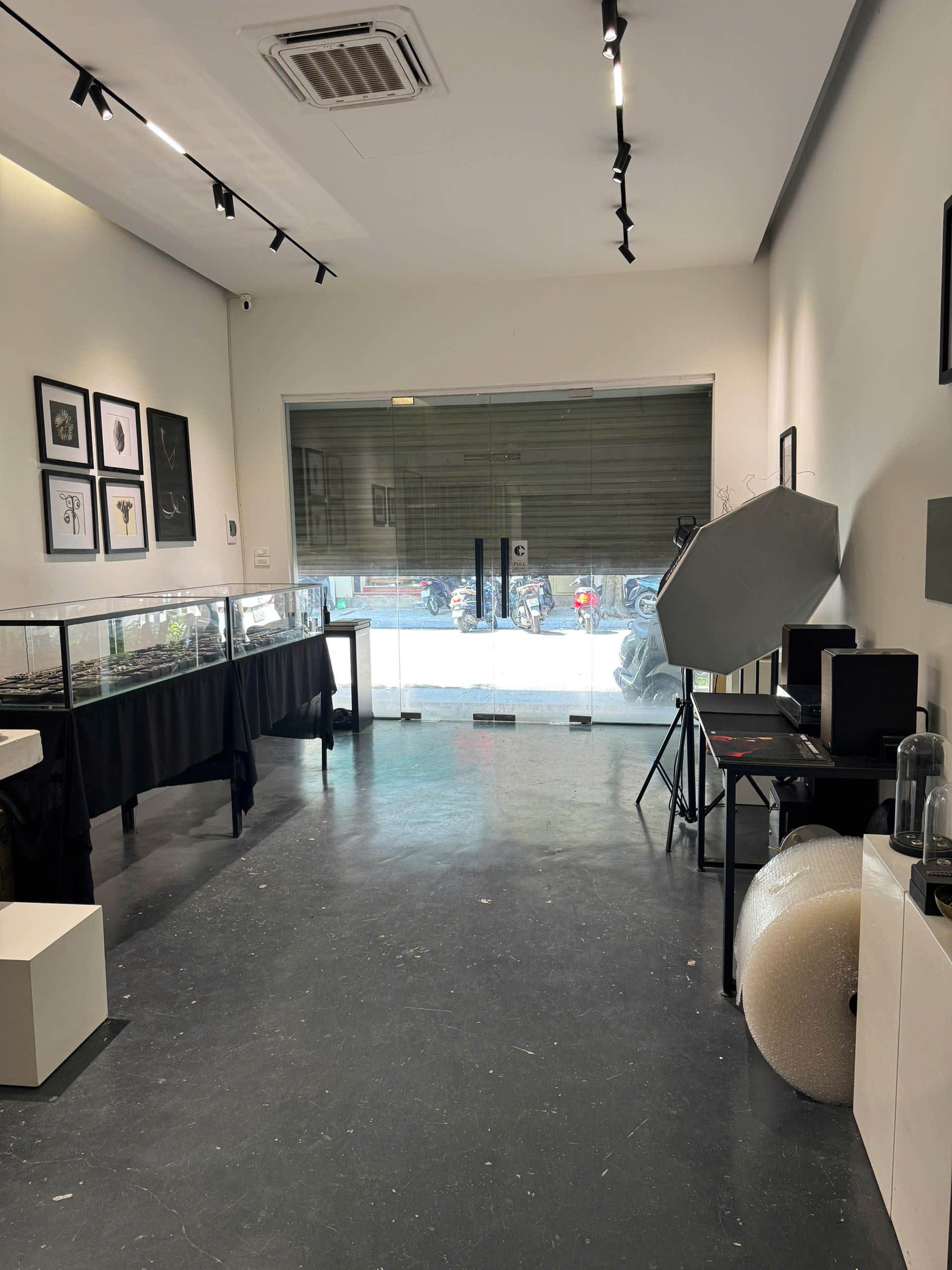 Cửa hàng có sẵn điều hoà âm trần, đèn hắt trang trí, cửa kính