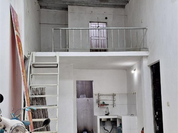 Diện tích sàn 35m2, gác xép bê tông 10m2 có khu bếp, khu vệ sinh đầy đủ