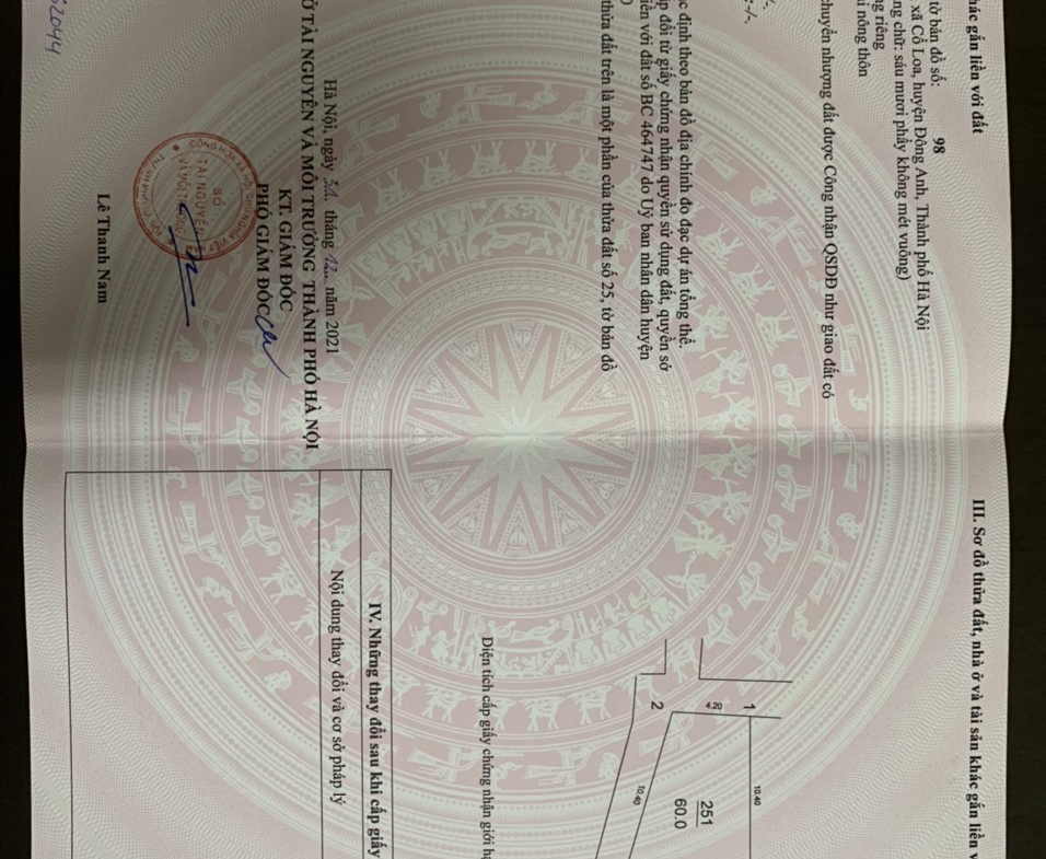 Chính chủ đang thở ÔXI nhờ bán lô góc 60m Mạch Tràng,Cổ Loa,Đông Anh, Hà Nội.