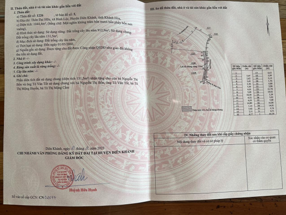 Chính Chủ Kẹt Tiền Cần Bán Gấp Lô Đất Vườn Xã Bình Lộc Diên Khánh