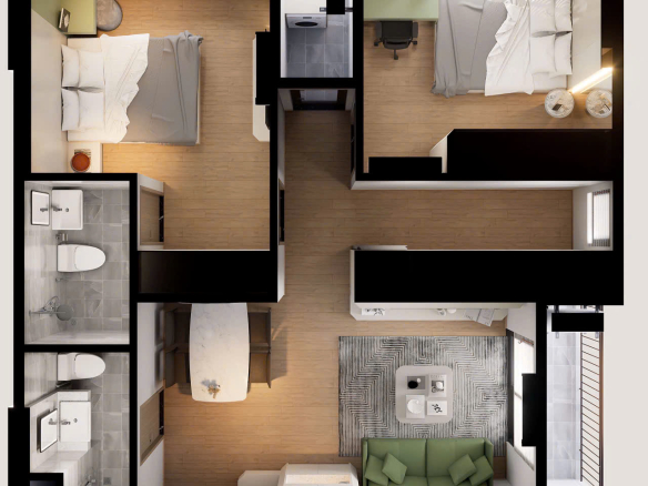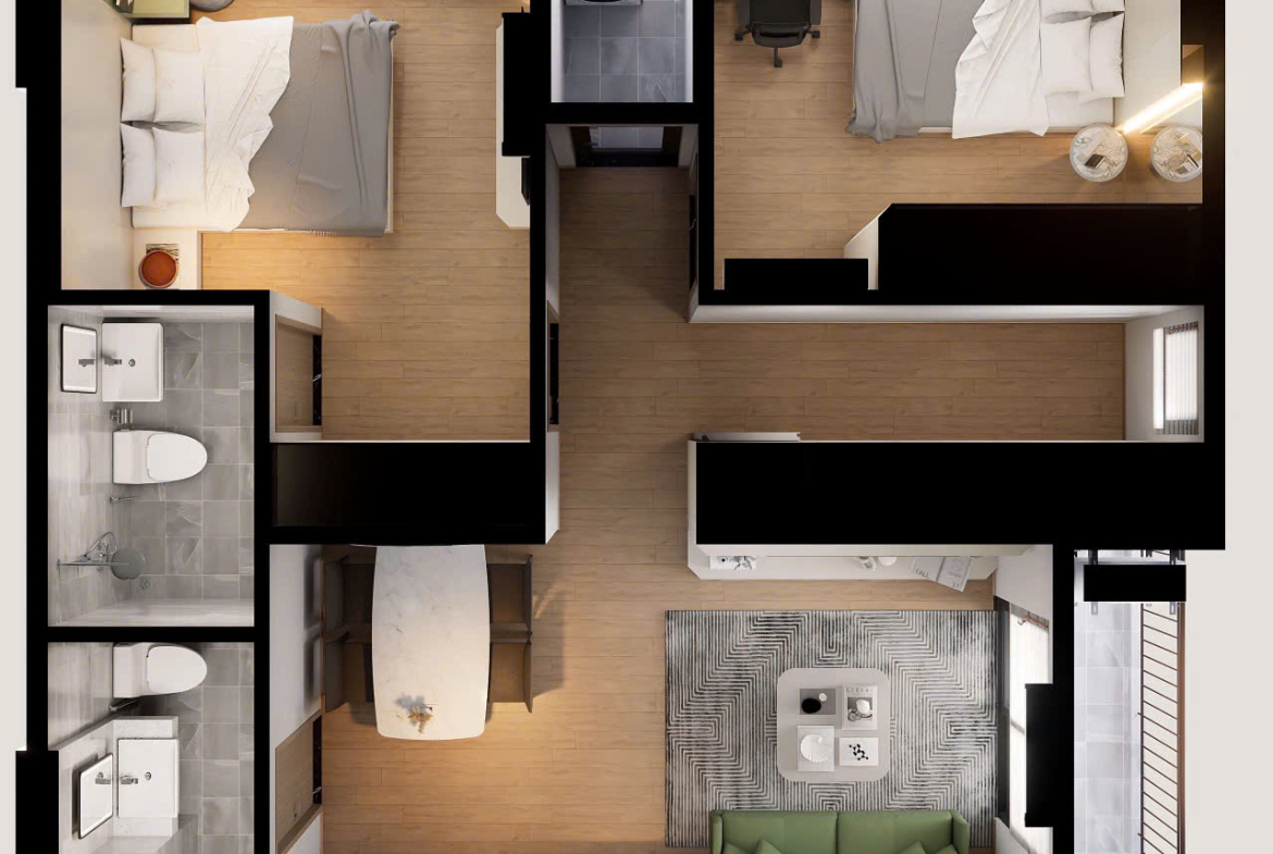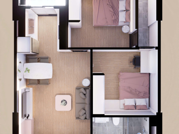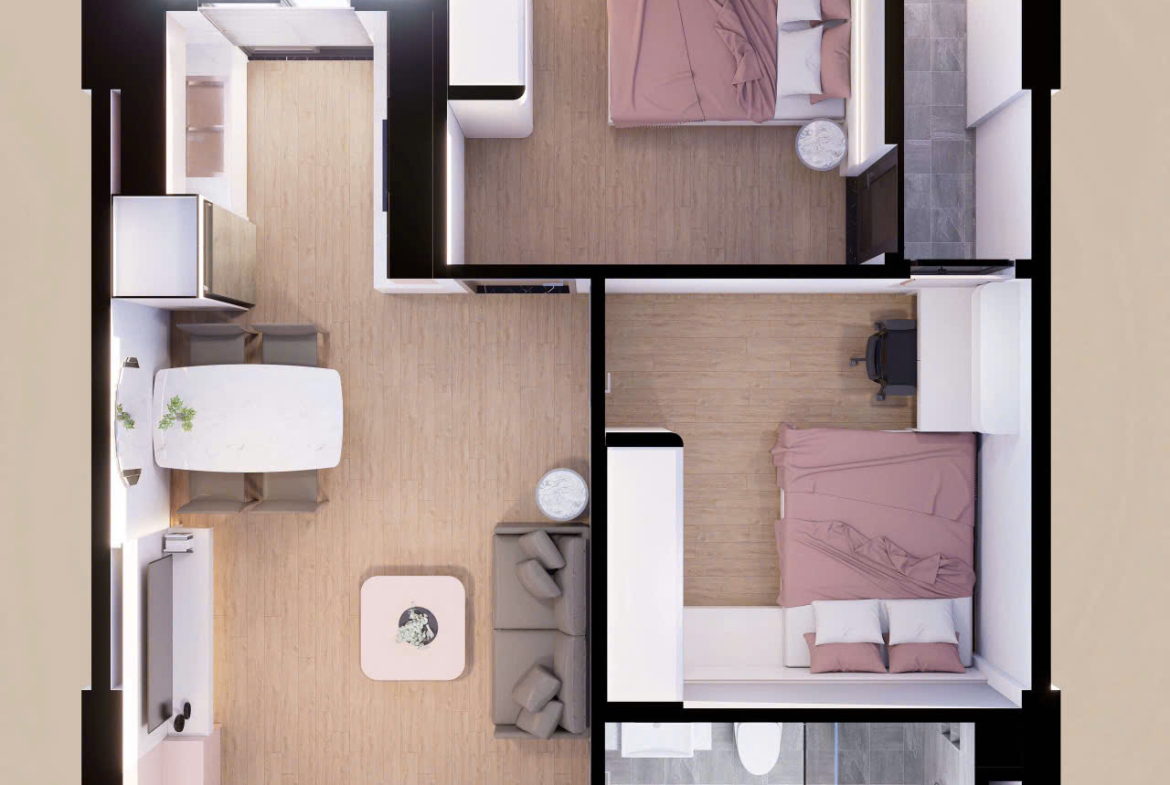 – Từ 1 đến 3 phòng ngủ
