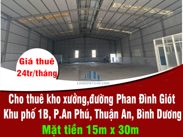 CHO THUÊ 450m2 KHO XƯỞNG,đường Phan Đình Giót, Khu phố 1B, Phường An Phú, Thuận An