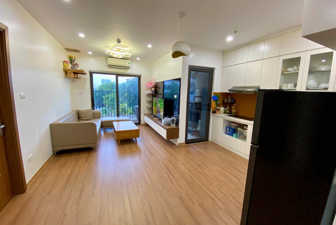 Nội thất đầy đủ: Giường, tủ, sofa, 2 điều hòa, 2 bình nóng lạnh, tủ lạnh, bếp… Người thuê chỉ cần xách vali vào ở, không cần sắm thêm gì.