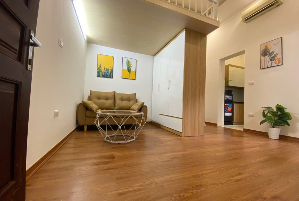 Thiết kế studio có gác xép, ban công rộng, thoáng mát. Phù hợp cho sinh viên, người đi làm hoặc nhóm bạn ở cùng.