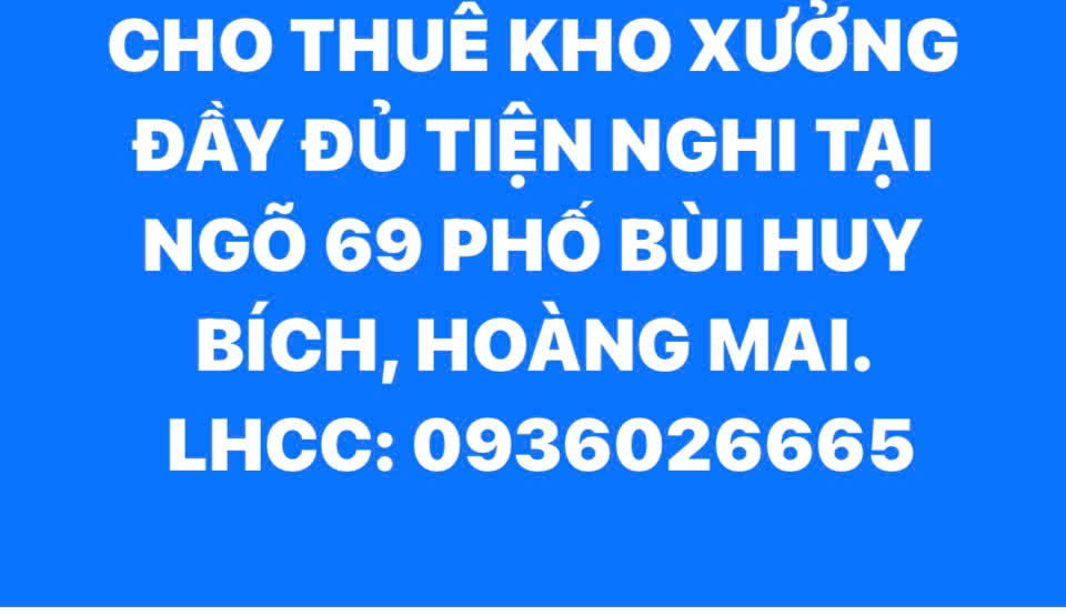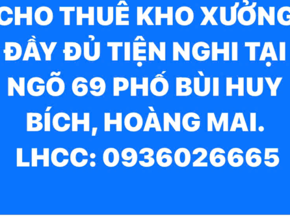 CHO THUÊ KHO XƯỞNG ĐẦY ĐỦ TIỆN NGHI TẠI NGÕ 69 PHỐ BÙI HUY BÍCH, HOÀNG MAI