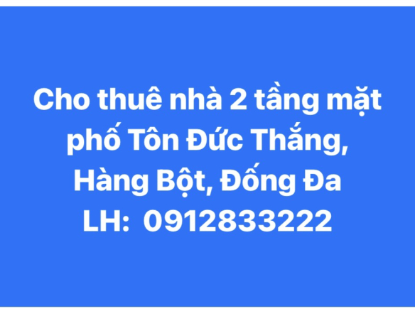 CHÍNH CHỦ CHO THUÊ NHÀ 2 TẦNG MẶT PHỐ TÔN ĐỨC THẮNG, PHƯỜNG HÀNG BỘT, ĐỐNG ĐA, HÀ NỘI.