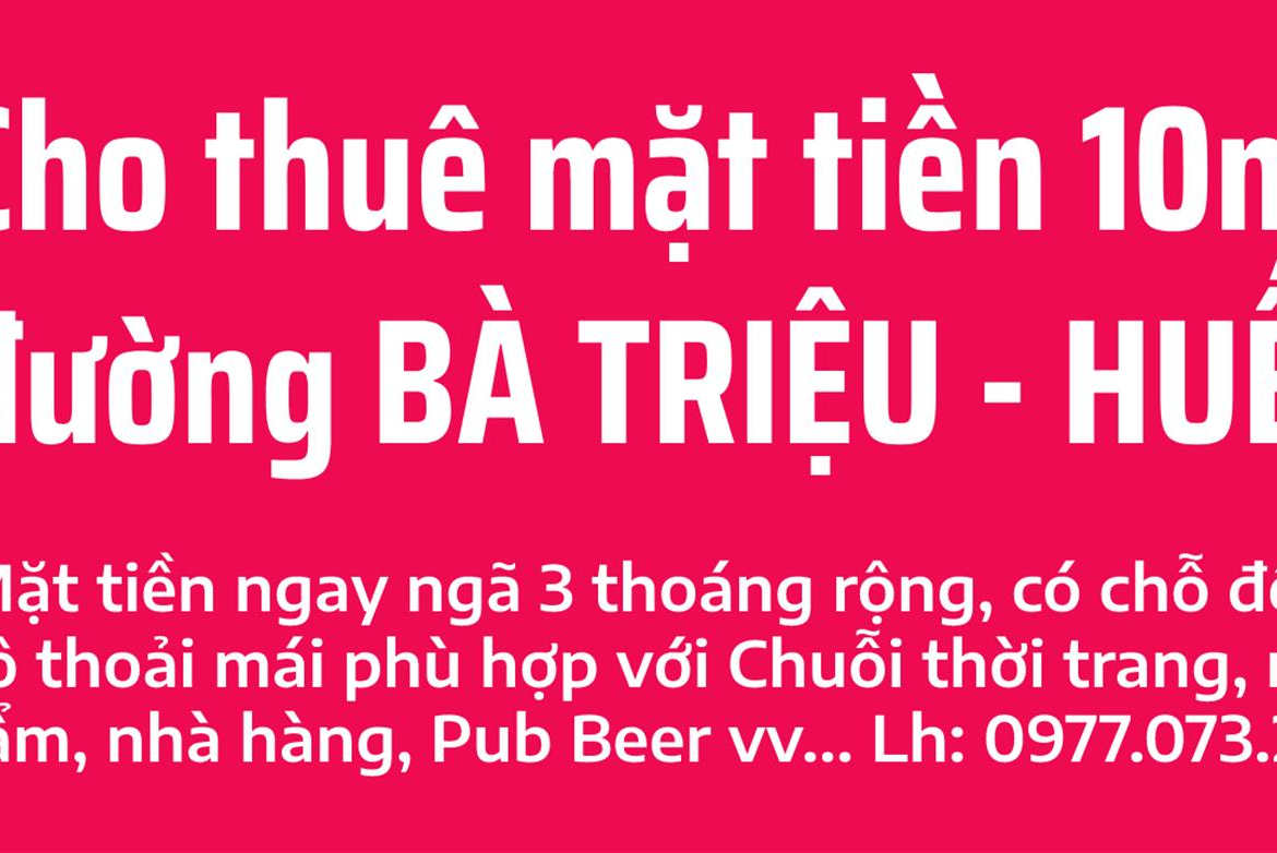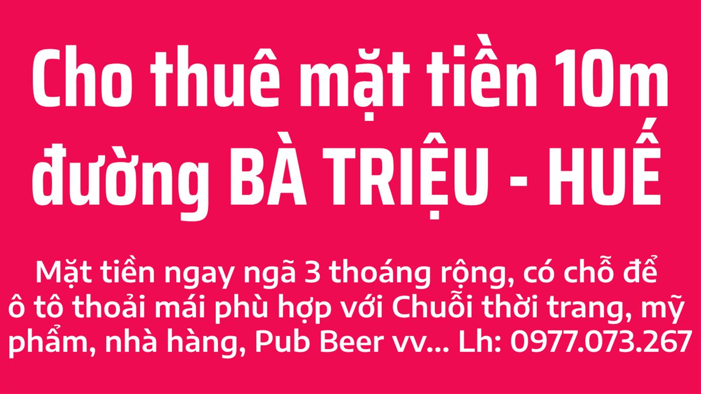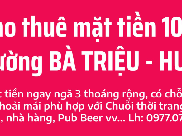 Cho thuê mặt tiền Bà Triệu 10 ngay khu vực sầm uất nhất Tp Huế
