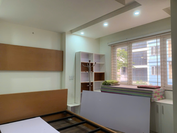 + Tầng 1 và 5 thông sàn, có WC mỗi tầng. Tầng 2,3,4, mỗi tầng có 2 phòng và WC khép kín. Tầng 6 là phòng thờ và có sân phơi. Có sân chung rộng phía sau nhà để xe. Đi lại 2 cửa trước, sau.