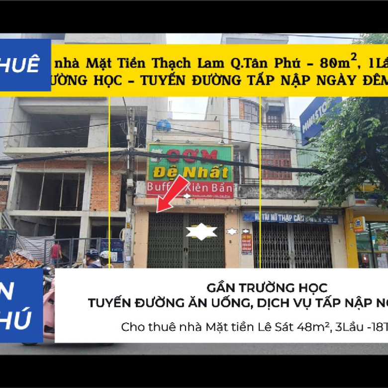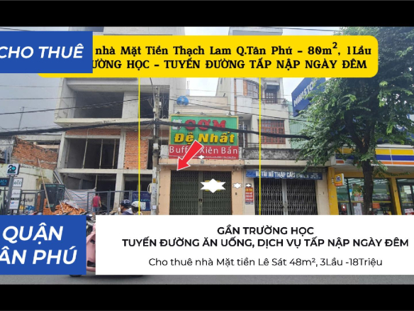 Cho thuê nhà Mặt Tiền Thạch Lam 80m², 1Lầu, 22Triệu – GẦN TRƯỜNG HỌC