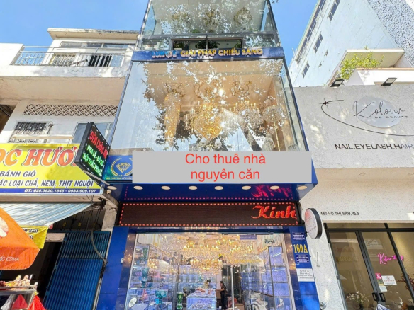 Cho thuê nhà MT 160 Võ Thị Sáu, Quận 3 85m2 4 tầng, Nhà siêu đẹp Cho Thuê nhà MT 160A Võ Thị Sáu, Phường Võ Thị Sáu (Phường 8 cũ), Quận 3 – Nhà 1 trệt 2 lầu, 1 sân thượng, 2 toilet. – Diện tích 85m2. Mặt tiền rộng 4m, dài 17 m (phía sau nở rộng 10m, hình chữ L). – Nhà tại khu vực trung tâm sầm uất, lượng xe cộ qua lại tấp nập, có thể kinh doanh nhiều ngành nghề. Hiện trạng nhà đang để trống, tiện cải tạo sửa chữa kinh doanh. – Ưu tiên cho thuê dài hạn trên 3 năm – Giá cho thuê: 60tr/tháng Giá quá tốt Bán giá 45 tỷ. ☎️ Lh ngay 0777768887 Huy Để em tư vấn miễn phí, đi xem nhà và làm việc chính chủ